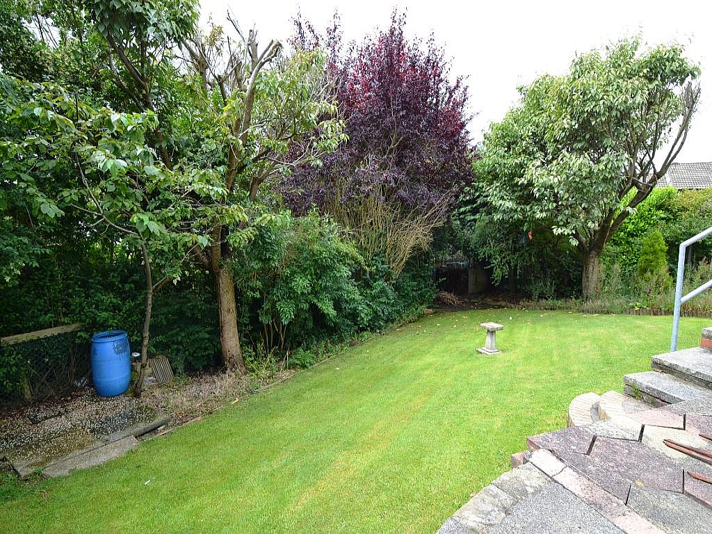 Externally: To the front is a drive for 2 cars leading to the detached garage, steps with railing support to the front rose garden. Side lawned garden with greenhouse & shed, rear lawned garden with flagged patio.