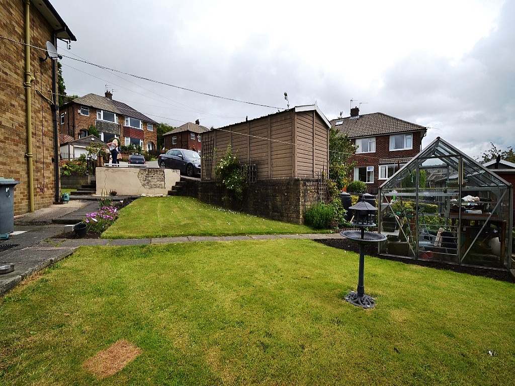 Much sought after style of semi-detached by Robinson, renowned Bradford builders of the 50 & 60's offering good size accommodation in this attractive cul-de-sac. The property comprises front door into the hallway, bay through lounge leading onto the lean to Upcv dg conservatory, kitchen, pantry, upstairs are 3 bedrooms, bathroom, gch, Upvc dg, front garden, drive for 2 cars with single detached garage, side lawned garden, rear lawned garden with patio from the Upvc dg conservatory.