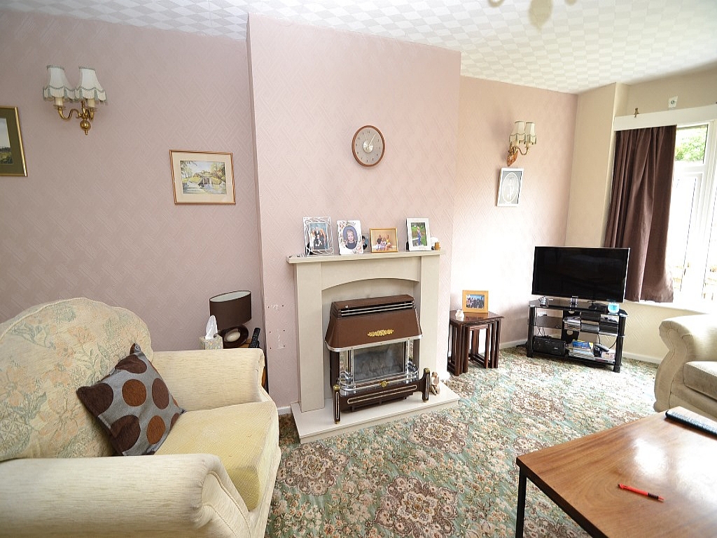 Lounge through to Dining Room: 7'23m x 3'38m. Upvc dg bay window to front, three ch radiators, marble fireplace with fireback gas fire/boiler, Upvc dg French doors lead onto the:-