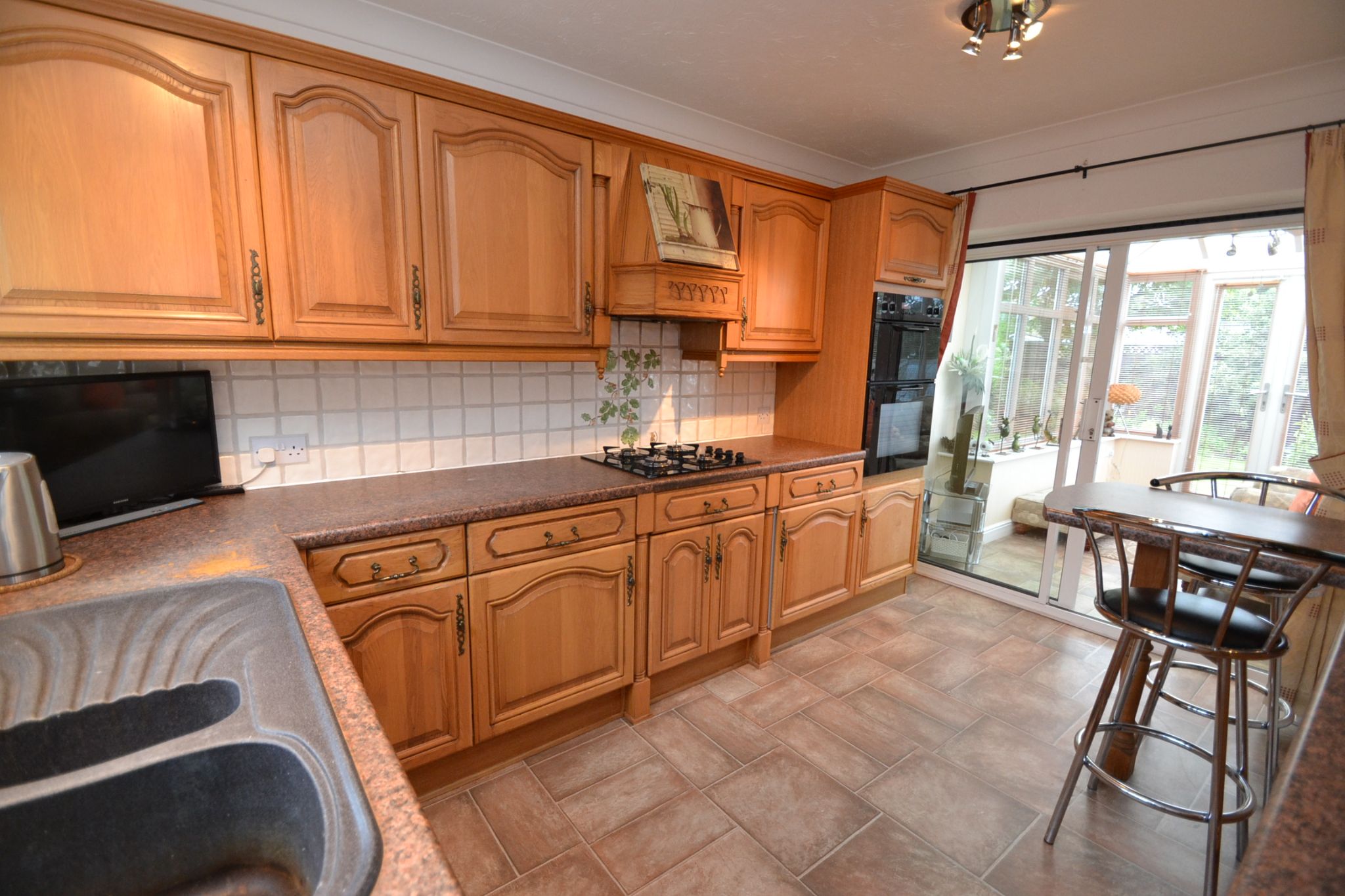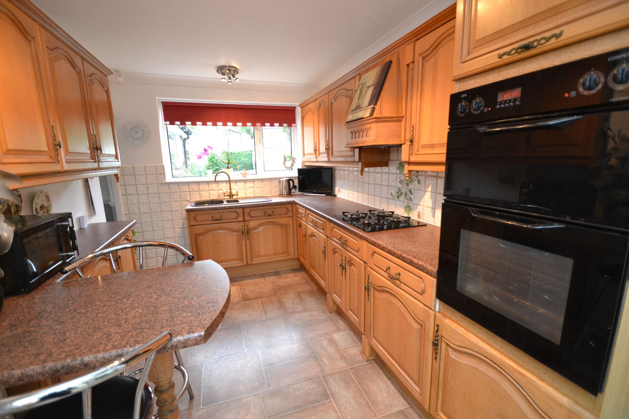 Extended Kitchen: Excellent range of wall & base units in oak, work tops with tiling above, extractor over a 4 ring AEG gas hob, built in double electric oven, composite granite effect 1.5 sink with brass mixer tap, breakfast bar, two radiators, Upvc dg patio doors lead onto the:-