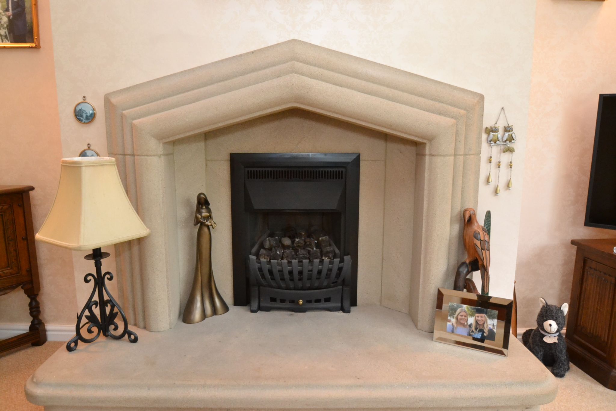 Lounge with Dining area: Feature stone fireplace with living flame coal effect gas fire, Upvc dg bay window to front, coving, radiator, archway onto the dining area, Upvc dg windows to front & side, radiator, coving.