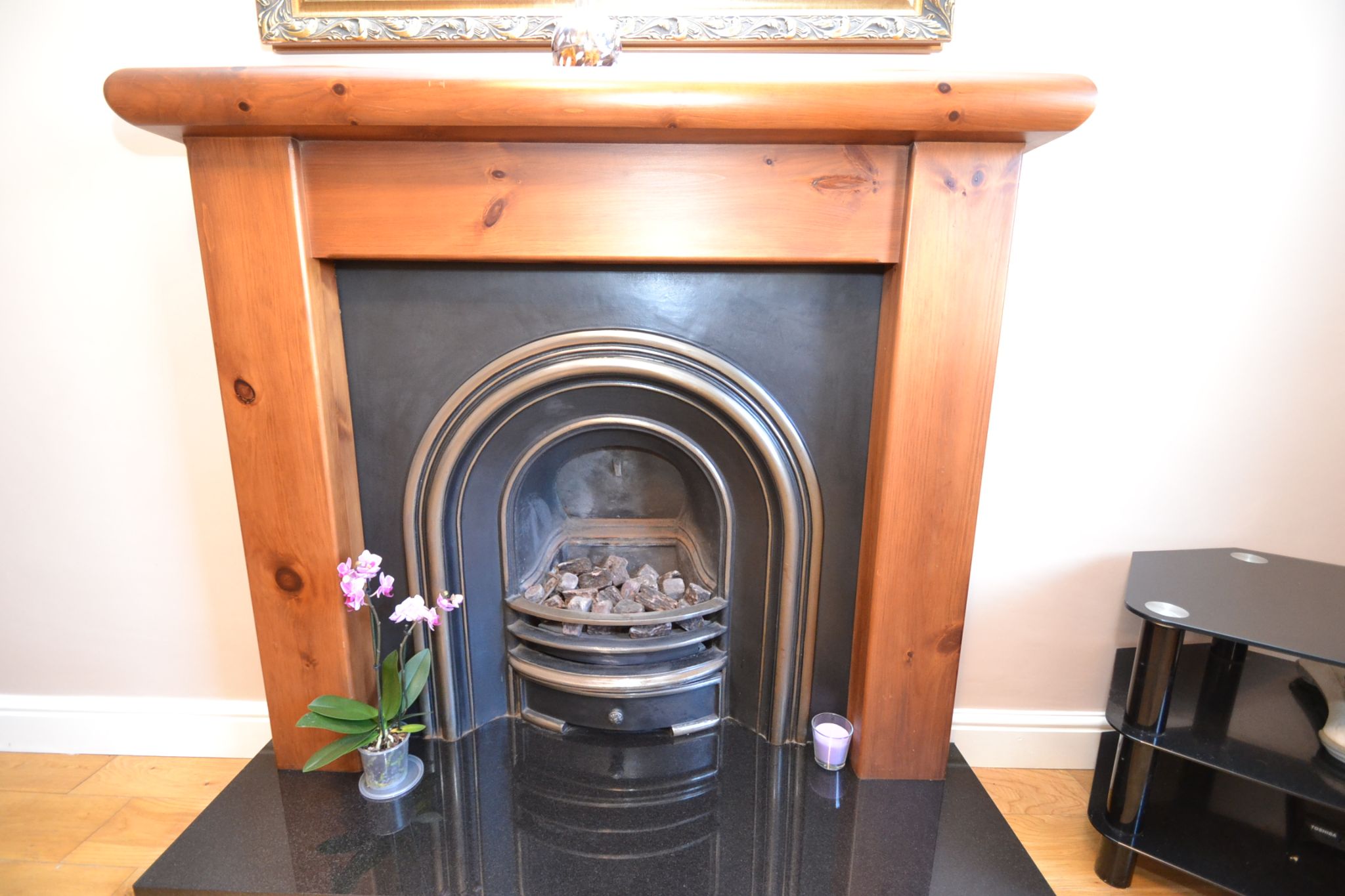 Lounge: 5.00m x 3.40m (16'4 x 11'1). Upvc dg window to front, radiator, solid oak wood floor, picture rail, pine fireplace surround with a cast iron fireplace and living flame coal gas fire and granite hearth.