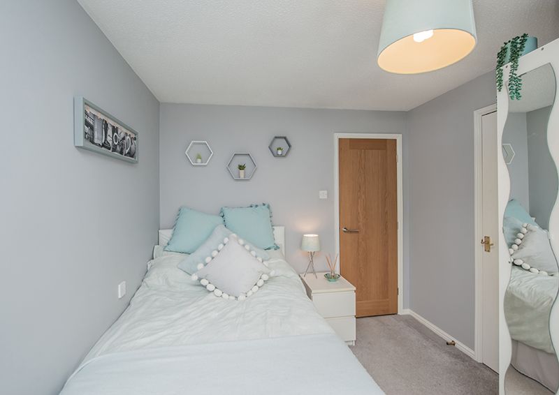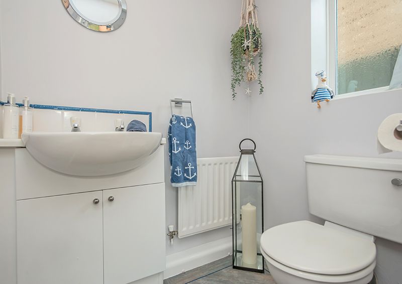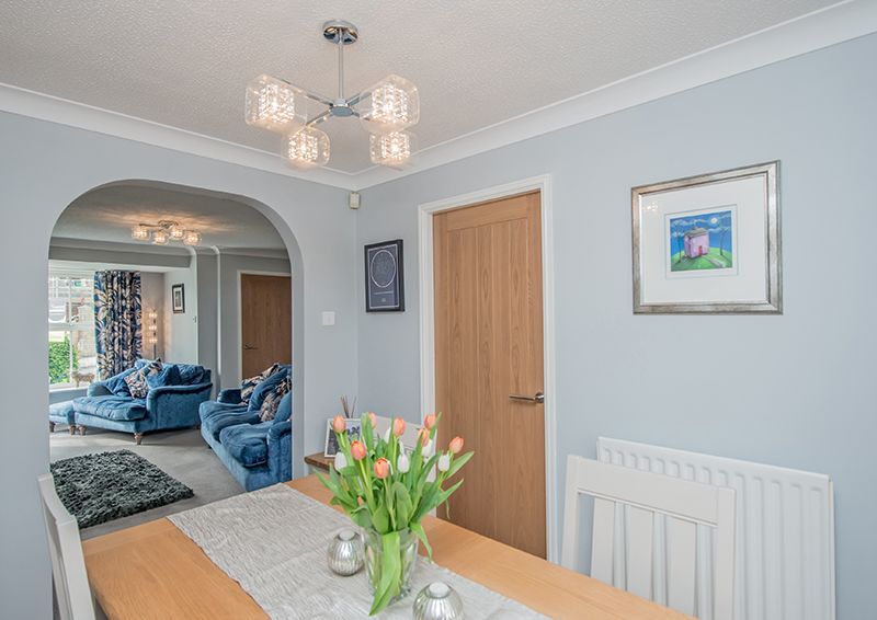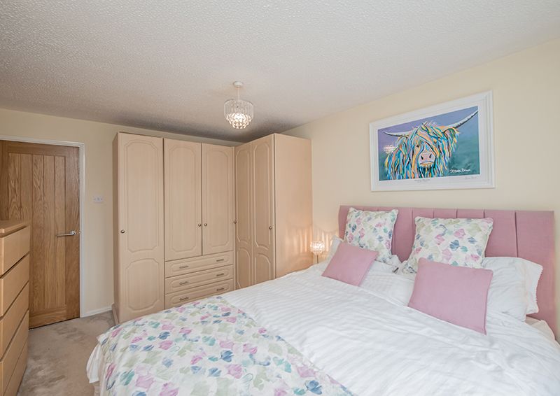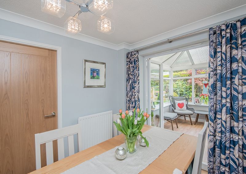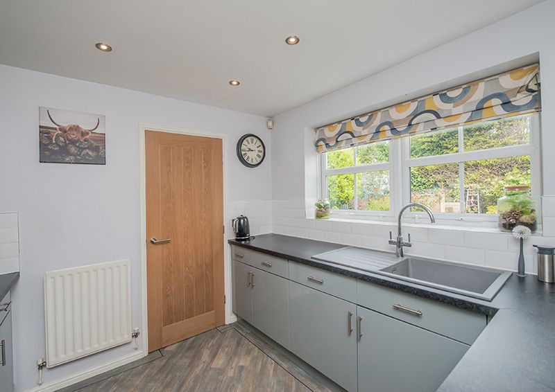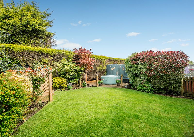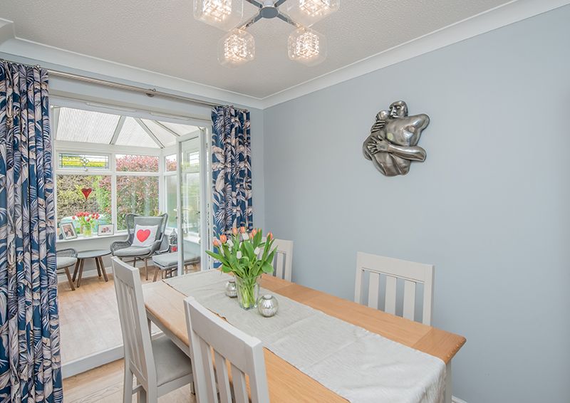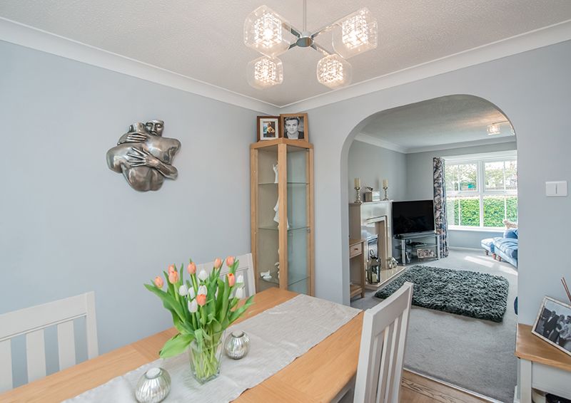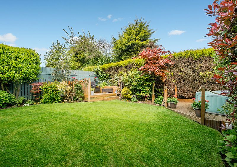 The exterior of the home displays an exquisite manifestation of well-thought-out design and care. The front of the house boasts ample off-street parking with a driveway and an integrated garage, adding to the overall convenience of the property. The rear reveals a perfect picture of serene outdoor living, with a manicured, private garden, which features a well-maintained lawn and colourful well stocked borders, also a flagged patio and a decked area serve as ideal spaces for alfresco evenings or simply enjoying the tranquil surroundings.