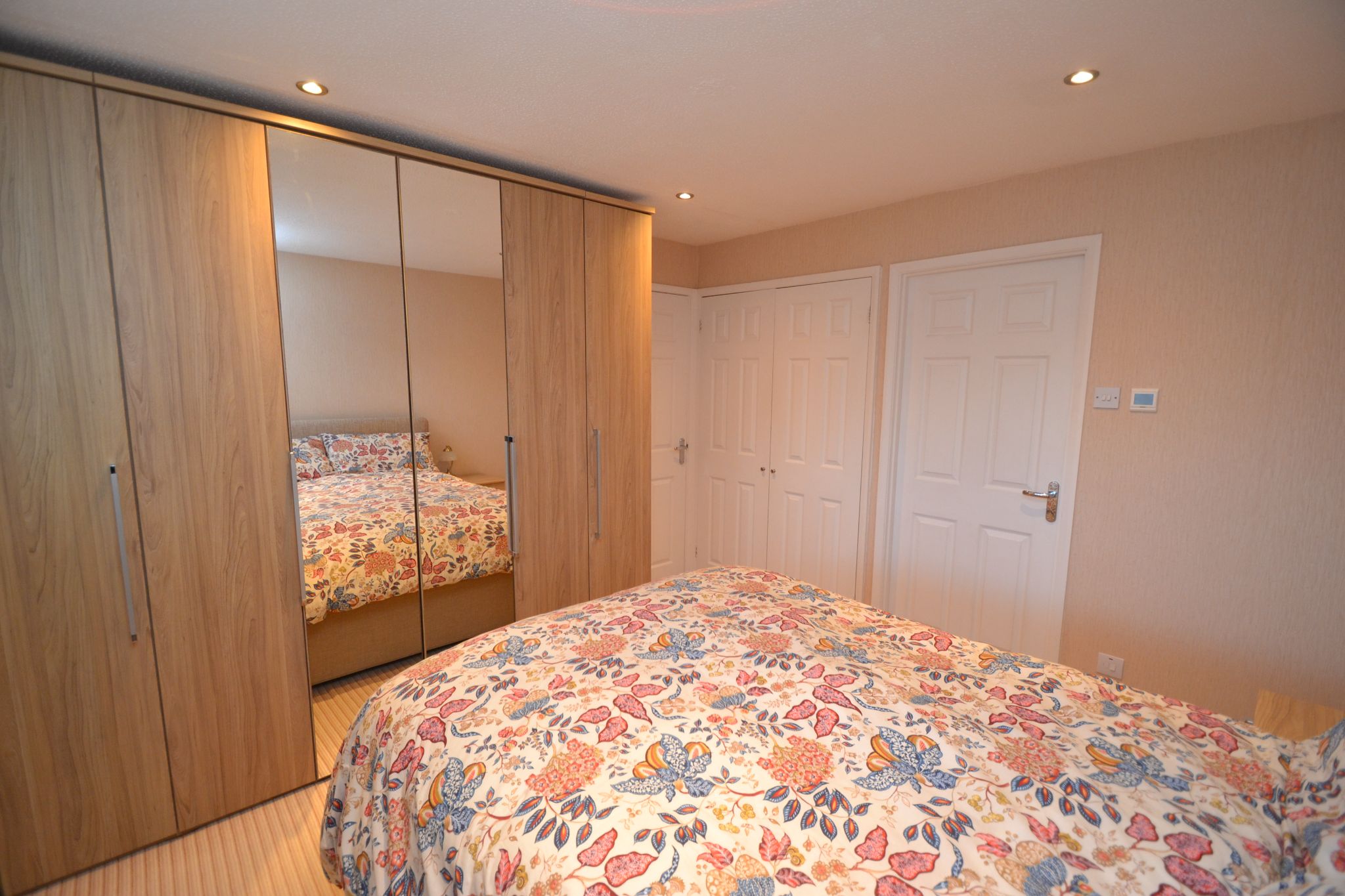 Bedroom 1: Upvc dg window to rear with a fitted blind, black out blind, radiator under, inset ceiling lights, built in fitted wardrobes, internal door leads into the:-