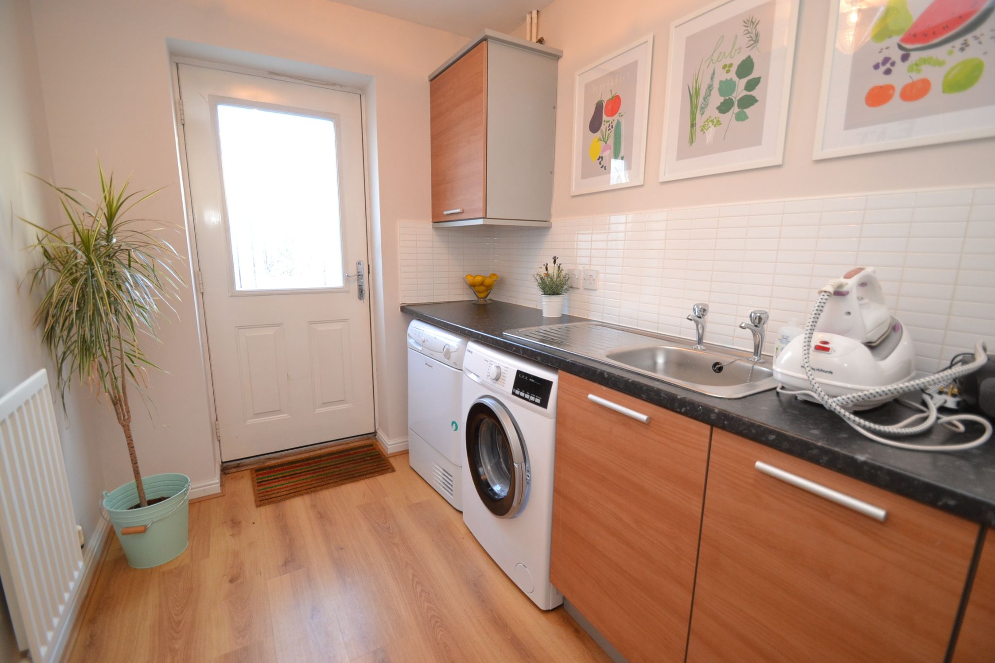 Utility Room: 2.77m x 1.98m (9'1 x 6'6). Real heart of the home with fitted wall, base and drawer units, stainless steel sink and side drainer, plumbed for automatic washing machine, wall unit with the Potterton Pro-max HE Plus boiler, laminate wood effect flooring, radiator, extractor, rear entrance door.