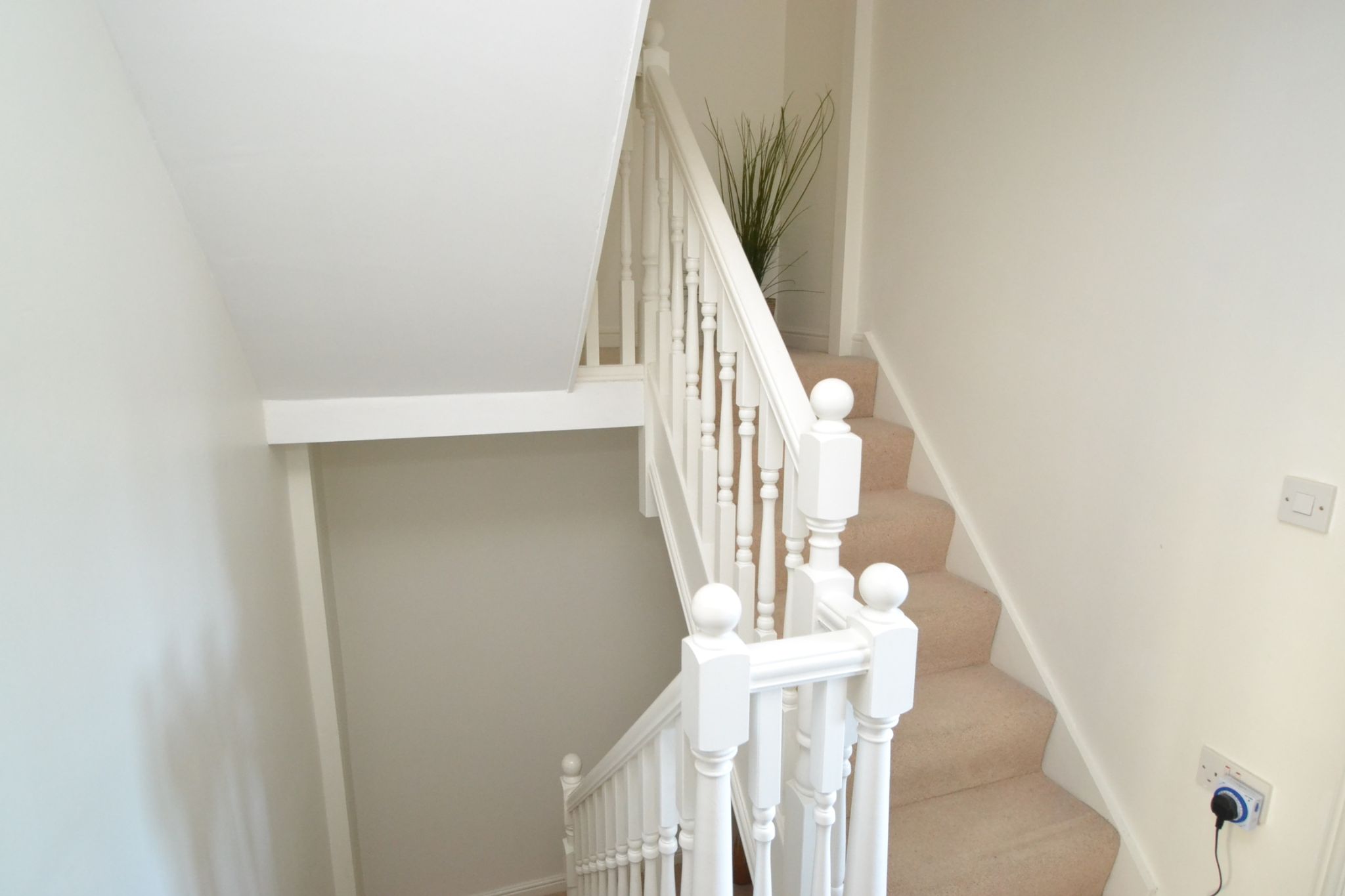 Second Floor: Landing: Stairs with a balustrade and spindles, access to the loft space.