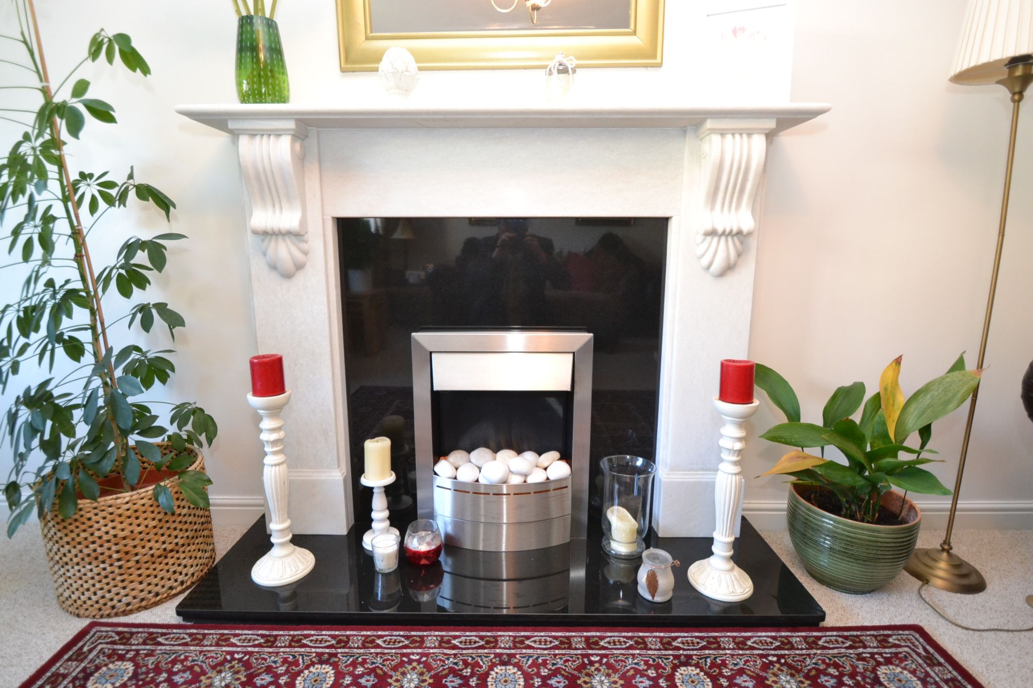 Lounge: 5.11m x 4.98m (max) (16'9 x 16'4 (max). Impressive size room, coving, attractive marble fireplace surround with a granite back and hearth and an eletcric living flame pebble fire, two radiators, two Upvc dg windows to the front elevation,