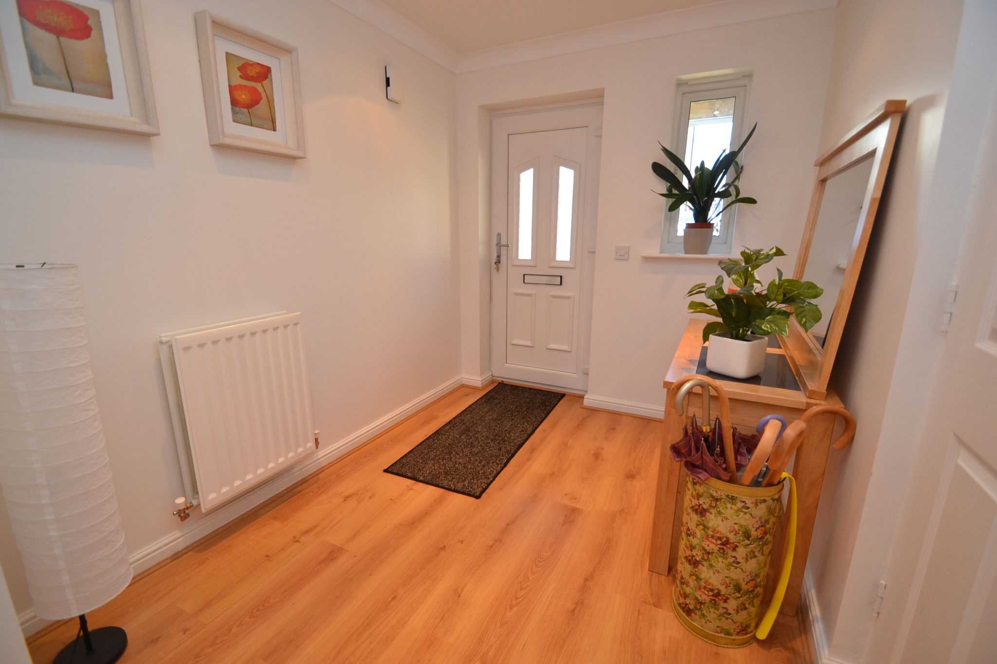 Hallway: - Laminate wood effect flooring, radiator, coving, inset ceiling lights.