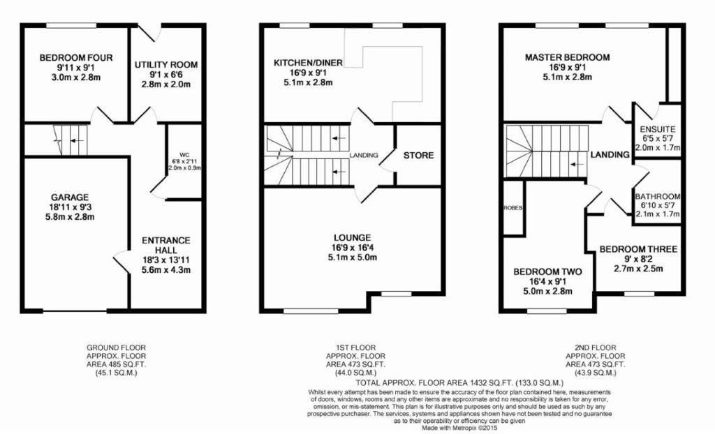 Integral Garage:- 5.77m x 2.82m (18'11 x 9'3). With up and over door, power and light.