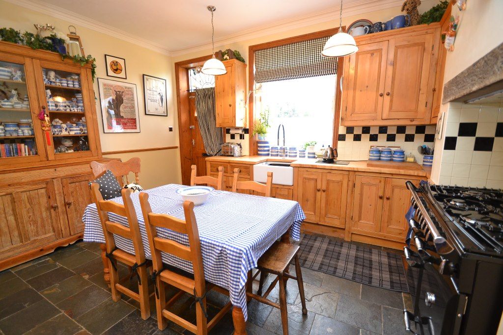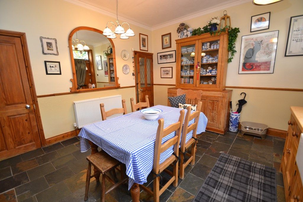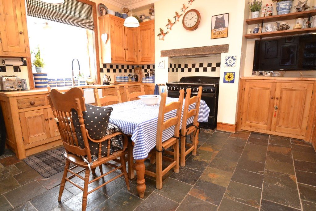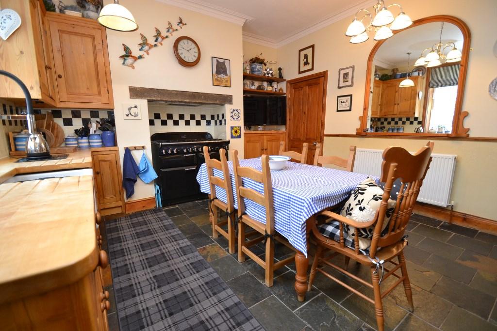 Kitchen Dining Room: 4.68m x 4.18m (15'4 x 13'8). Bespoke built range of wall & base units in solid reclaimed pine, the work tops are in solid sycamore, under lighting, there is a Belfast sink with a chrome mixer tap, Upvc dg window to rear, integrated Smeg dishwasher, housing for a range cooker, matching built in storage cupboards and shelving, slate floor, double ch radiator, original cornice, space for a large table and chairs, internal door to the:-