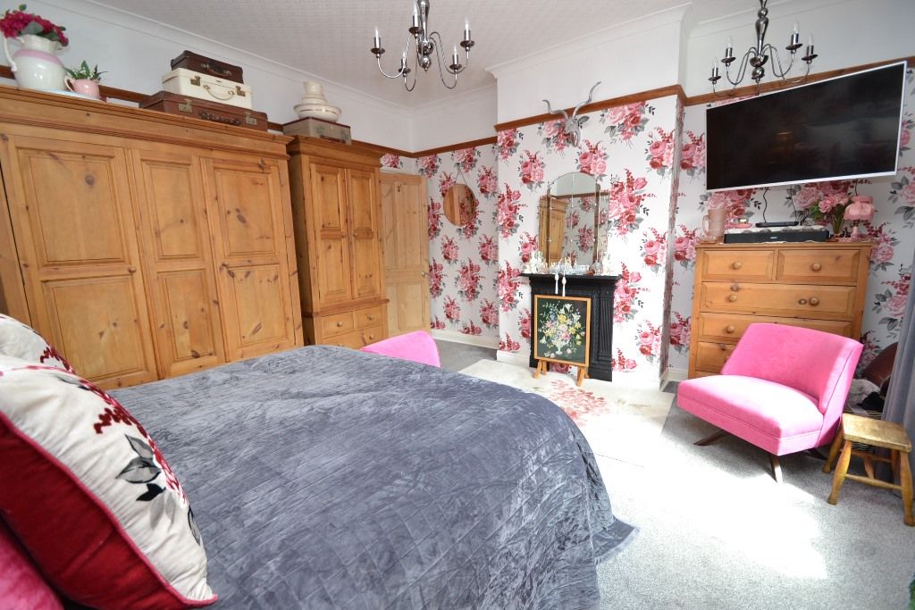 Bedroom 1: 4.59m x 4.38m (15'0 x 14'4). Upvc dg window to front, double ch radiator, coving, picture rail, black cast iron feature fireplace, walk in cupboard.