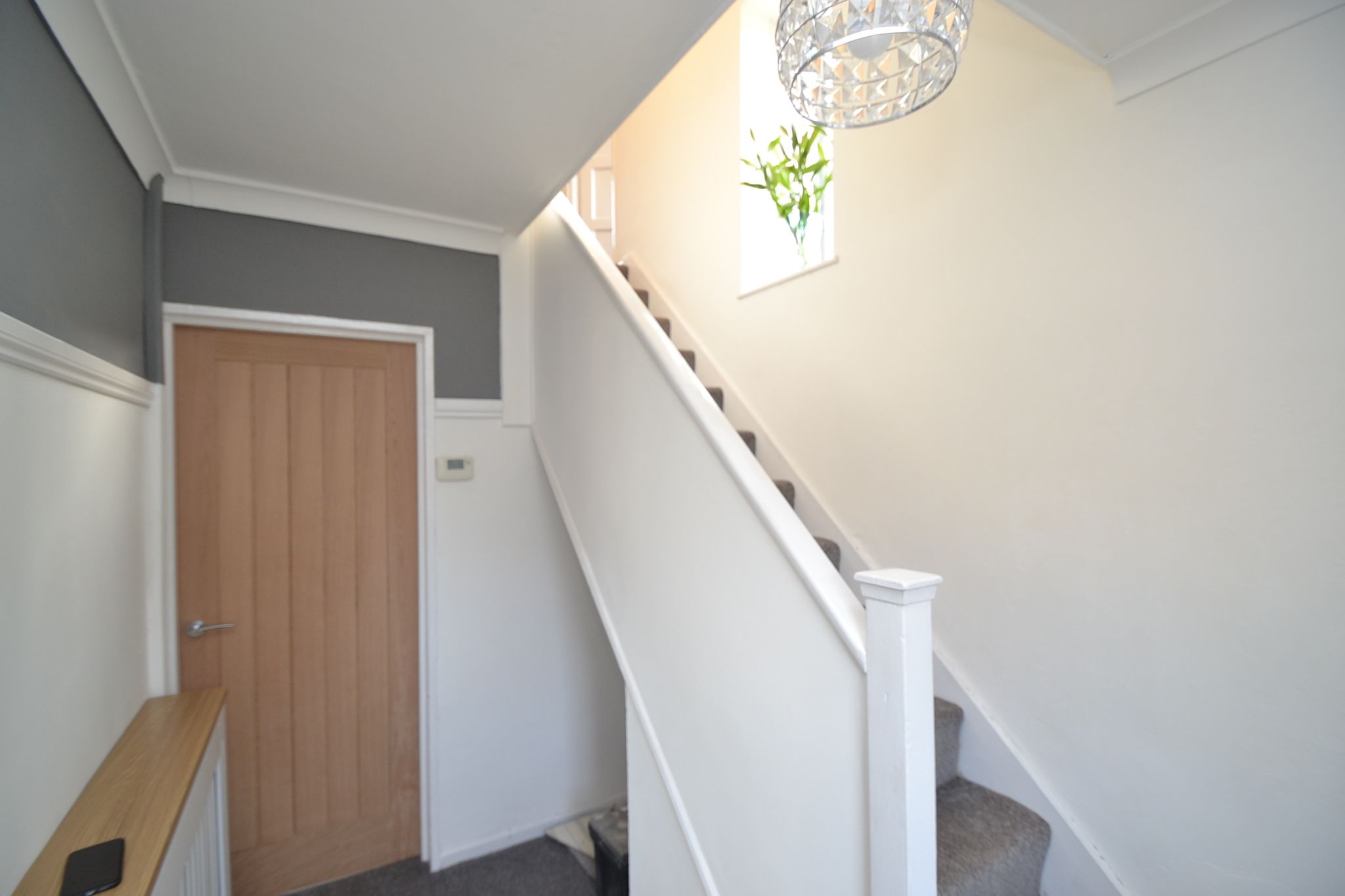 Front Entrance: Upvc door into the hallway, stairs, thermostat control and radiator.