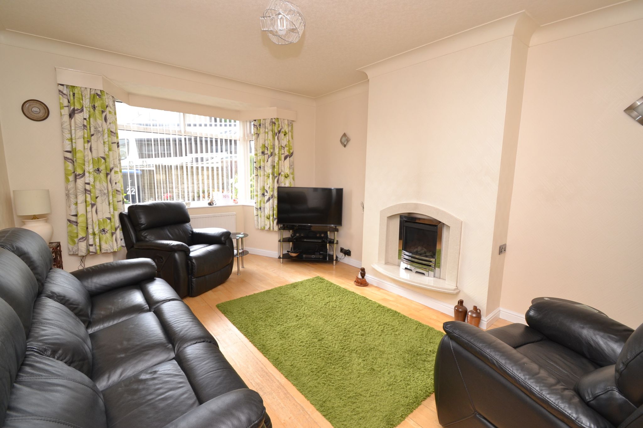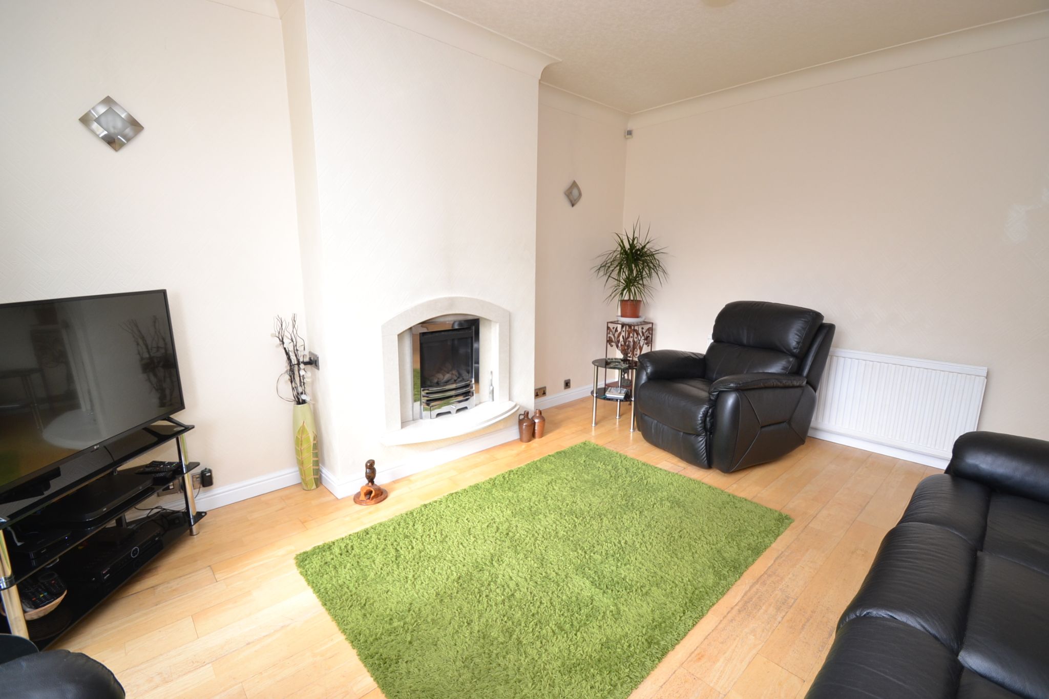 Lounge: 4.4m x 3.60m (14'6 x 11'10). Upvc dg window to front with a fitted blind, two radiators, coving, laminate floor, feature fireplace with a living flame coal effect gas fire.