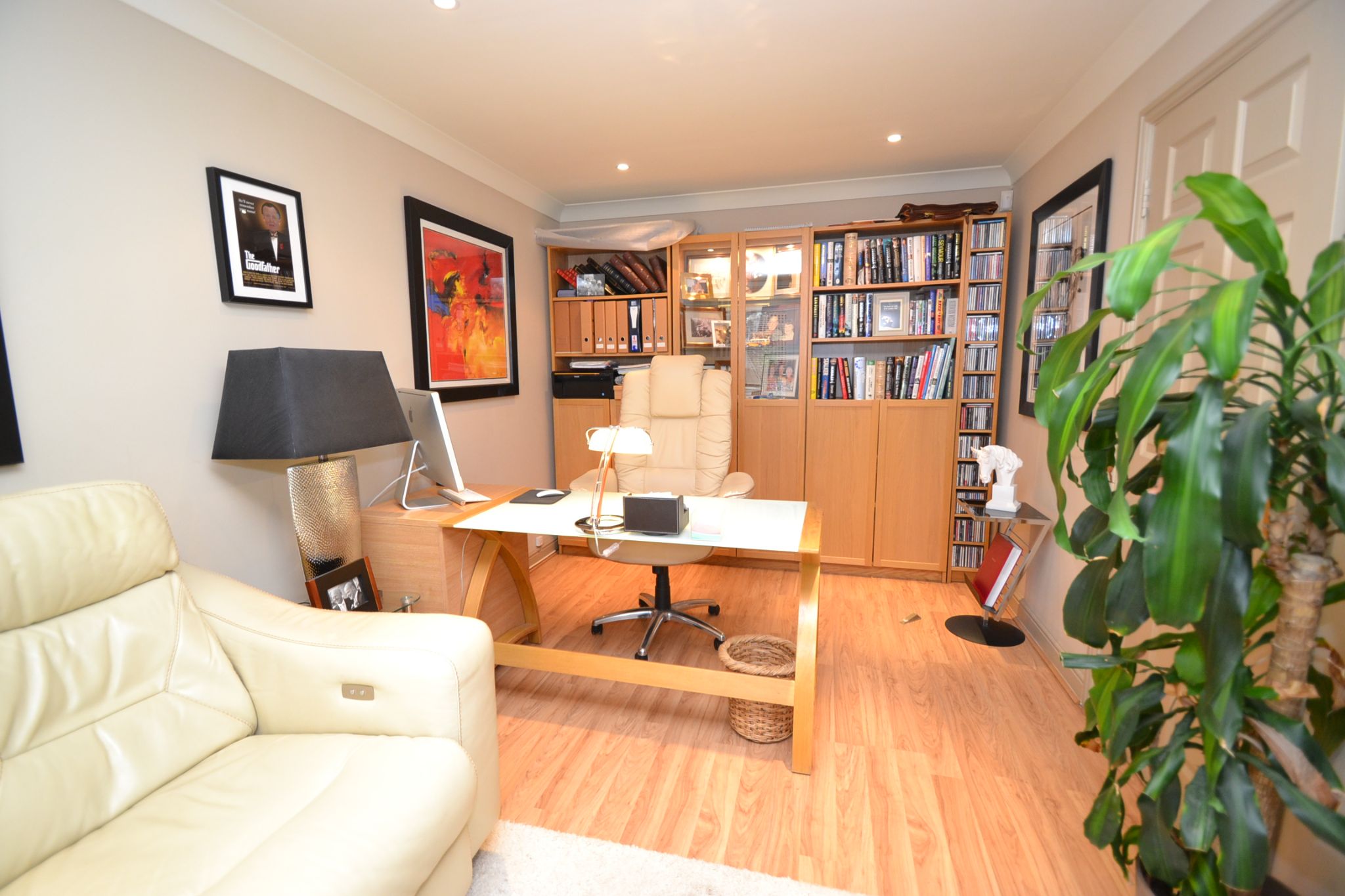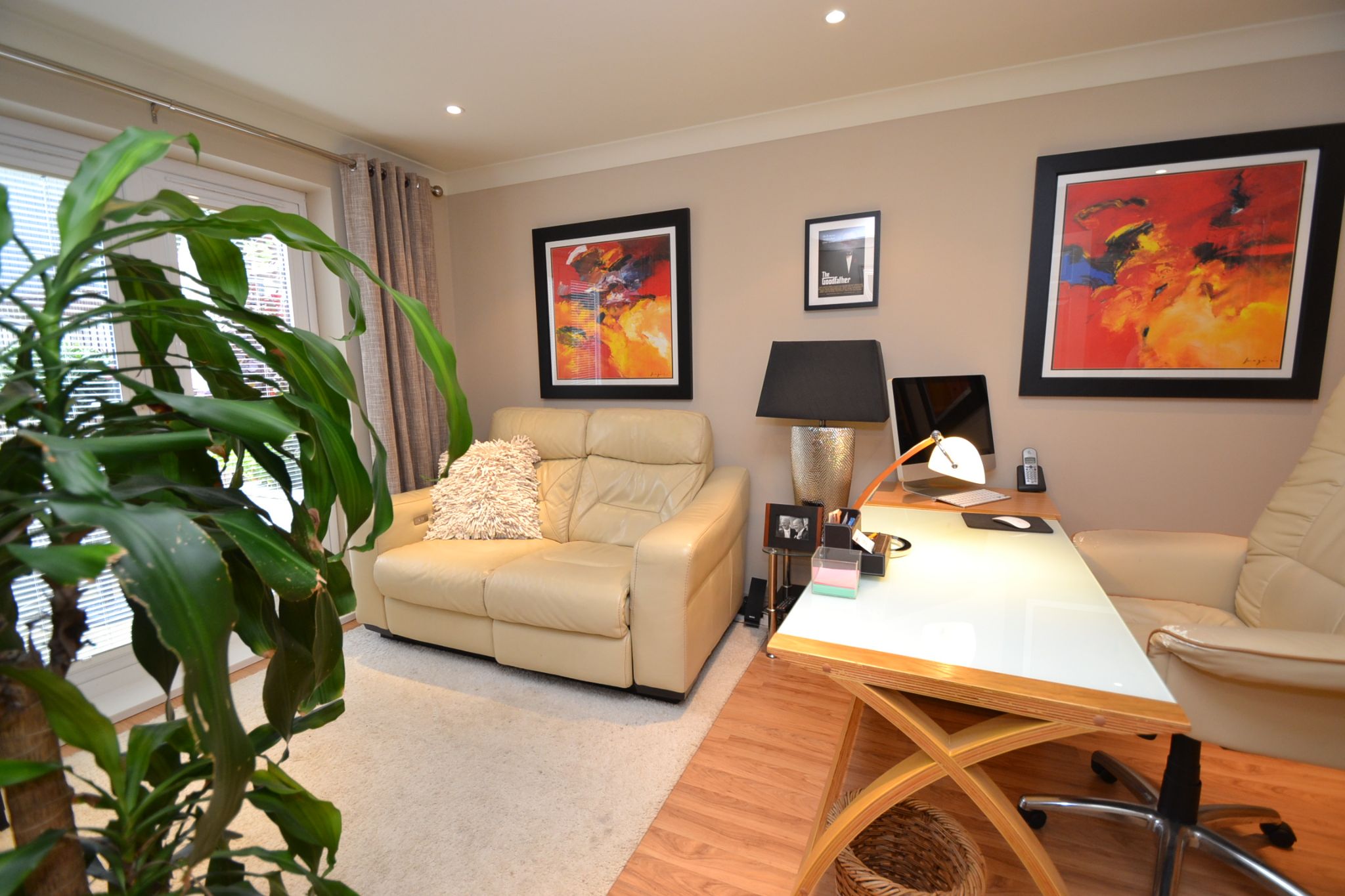 Family Room/Bedroom 4/Home Work Office: 4.5m x 2.80m (14'10 x 9'0). Rear Upvc dg French doors with fitted blinds, radiator, coving, inset ceiling lights, laminate floor.