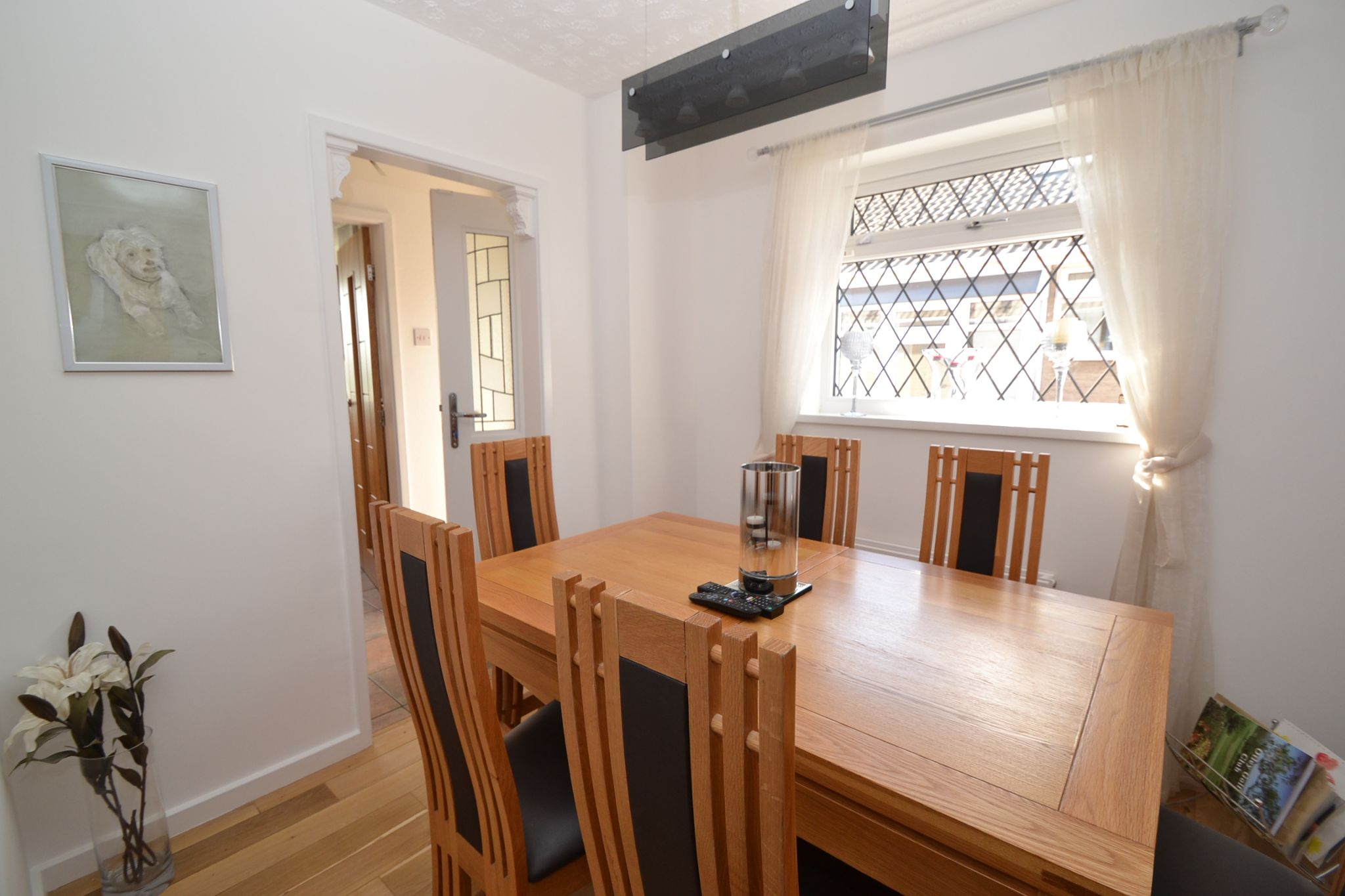 Dining Room: Diamond leaded Upvc dg window to side, radiator, solid oak wood floor.