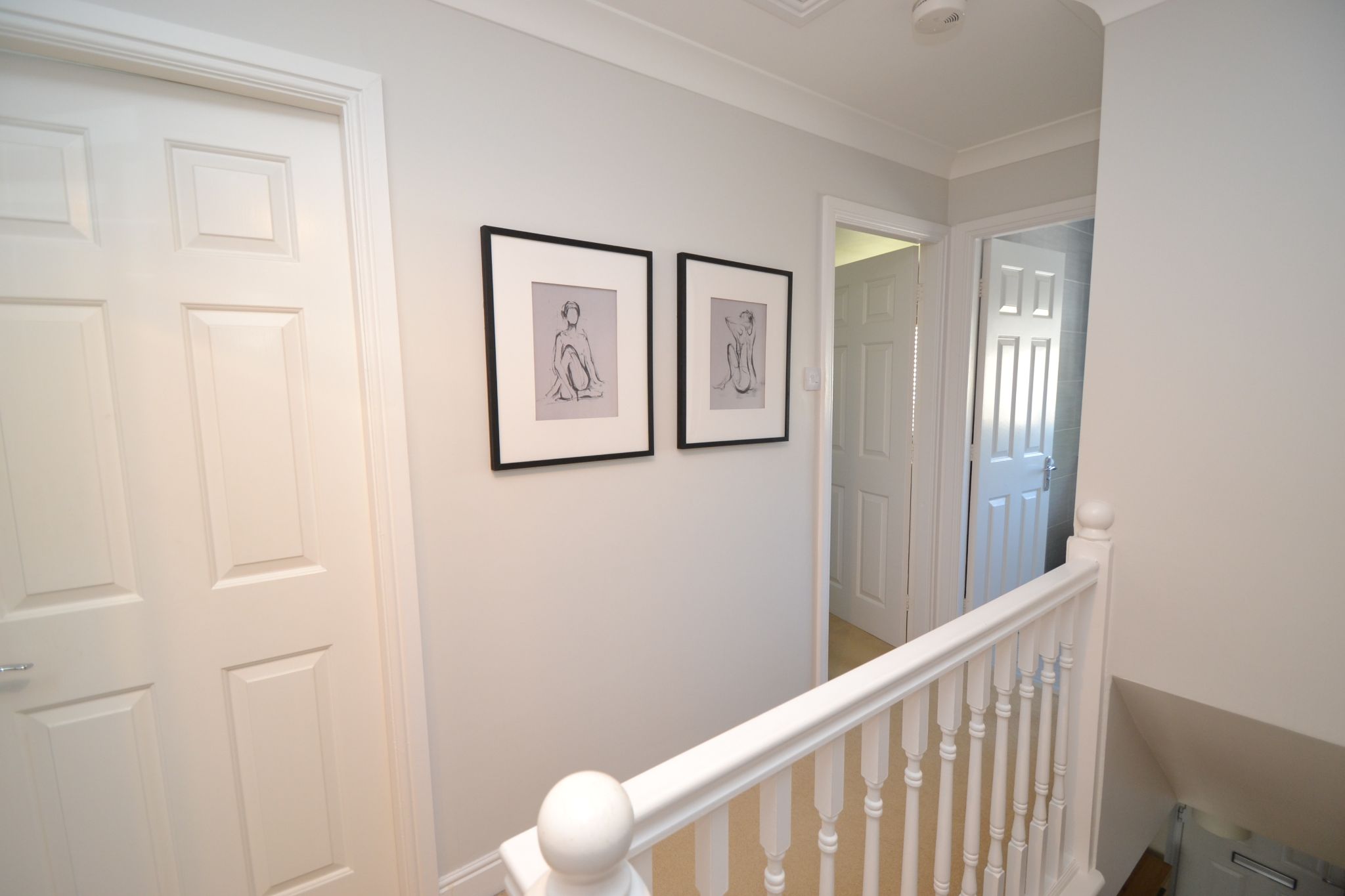 Landing & Stairs: Spacious landing with loft access, drop down folding wood ladder, boarded with light, useful linen cupboard, coving.