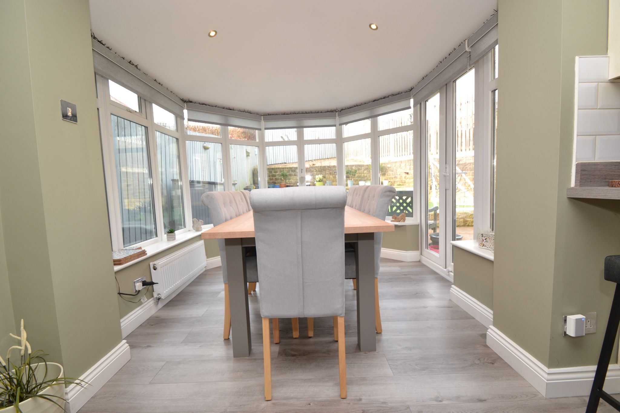 Upvc dg Conservatory: 2.62m (max) x 2.59m (max) (8'7" (max) x 8'6" (max). French doors to the rear, insulated ceiling with inset ceiling lights, fitted blinds, laminate flooring.