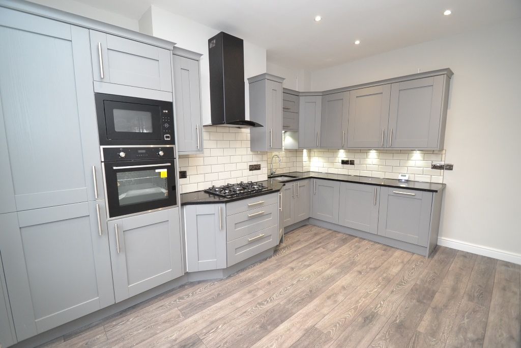 Kitchen: 4.43m x 3.35m (14'6 x 11'0). Excellent range of quality wall & base units in grey with sparkly granite tops, cream brick effect tiling above with under lighting and stainless steel power points and plug sockets, extractor hood over a 5 ring gas hob, built in electric oven and microwave, stainless steel sink with extendable mixer tap, integrated auto-washer and dishwasher, integrated fridge and freezer, Upvc dg window to front, laminate flooring, two individual styled ch radiators, inset ceiling lights.