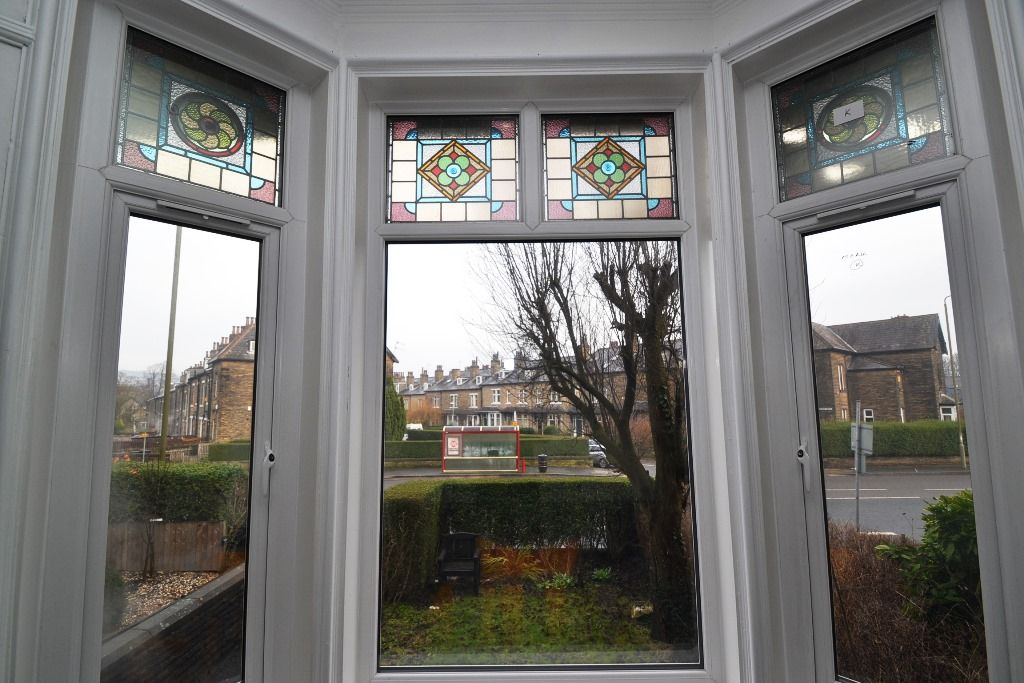 Bay Lounge: 5.54m x 4.51m (18'2 x 14'9). Front triple glazed bay Upvc window retaining the coloured leaded lights, feature marble fireplace with tiled hearth and open cast iron open fire, original cornice, radiator, high skirting boards.