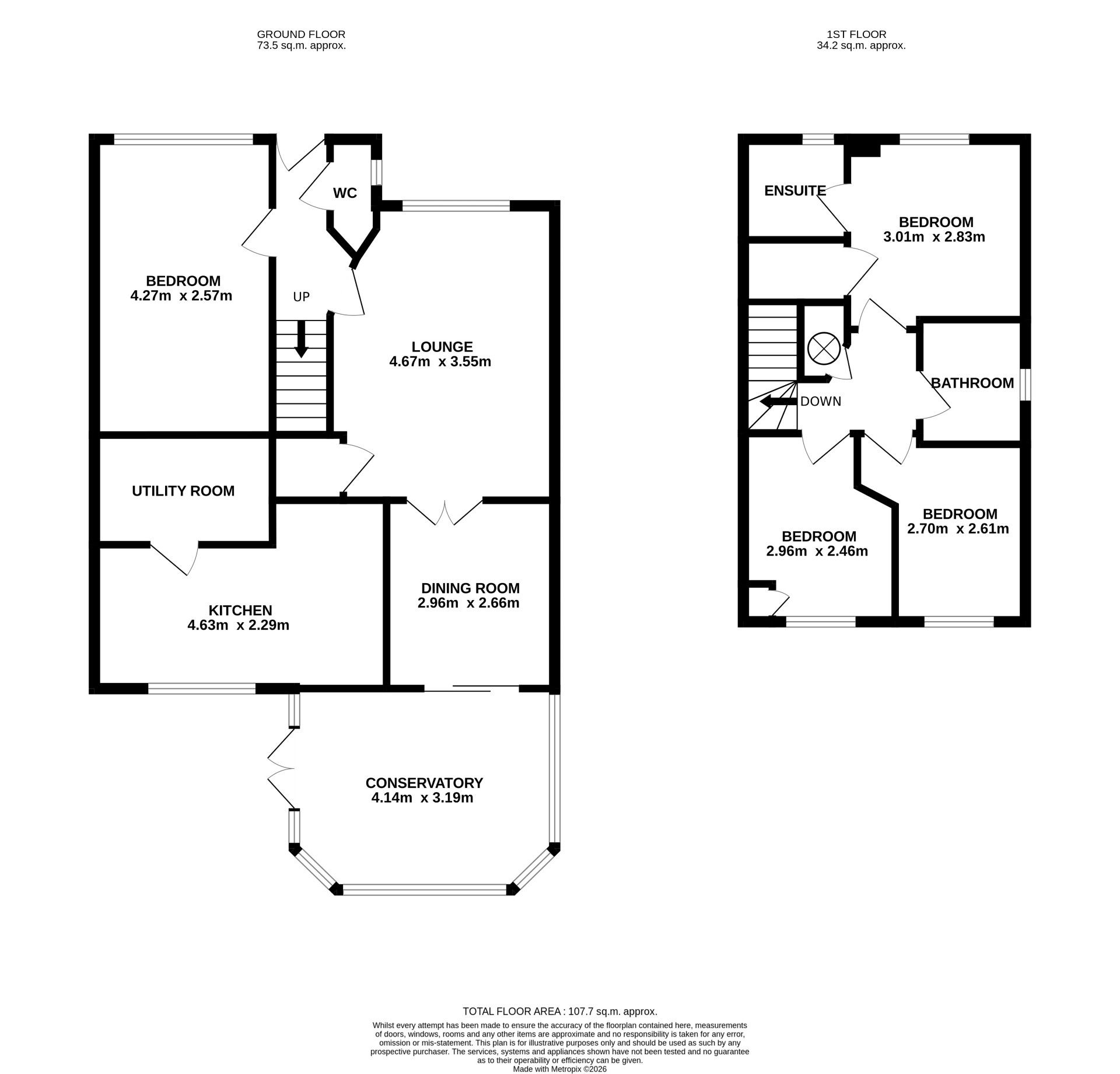 Arranged over two floors, the accommodation is notably spacious and versatile. On the ground floor, the entrance opens to a welcoming hallway leading to a downstairs cloakroom for added convenience, there are two good sized reception rooms, offering ample space for family living and entertaining. There is a good-sized kitchen fitted with an array of wall and base units and a useful separate utility room. To the rear, a spacious uPVC double-glazed conservatory provides a delightful additional living area, overlooking the enclosed, south-facing garden – perfect for enjoying sunny days in privacy.What was once the garage has been tastefully converted and is currently used as a fourth bedroom. However, this flexible space could easily be adapted for use as a home office, playroom, or snug depending on requirements. Upstairs, there are three bedrooms and a modern family bathroom, with the main bedroom enjoying the benefit of an en suite shower room.
