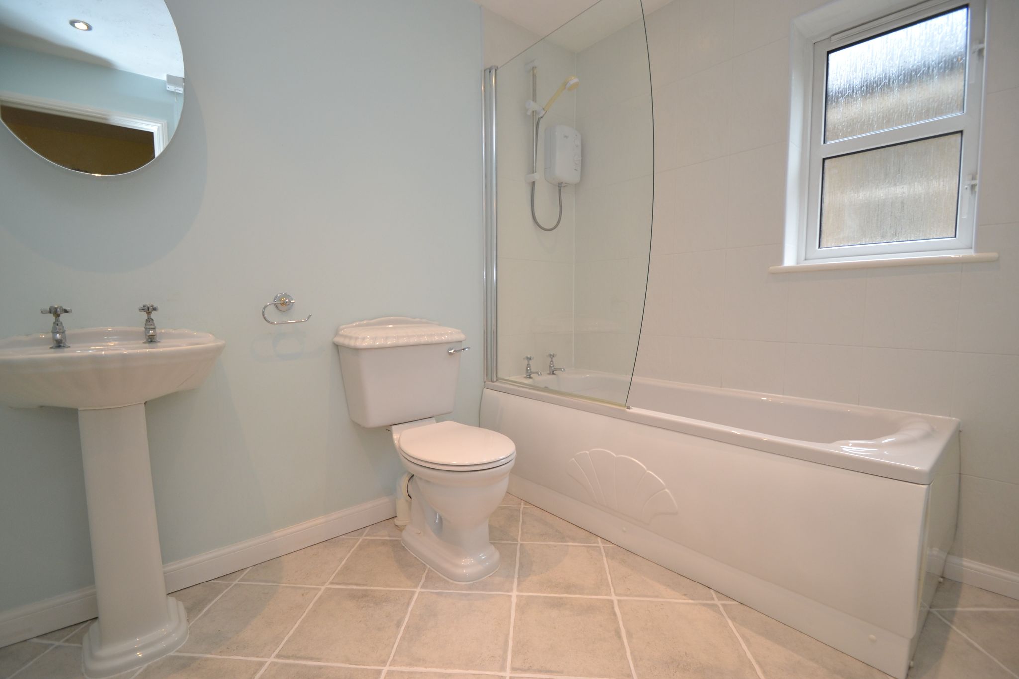 Family Bathroom: 2.54m x 1.83m (8'4 x 6'0). Three piece suite in white, part tiled, shower glass screen, electric shower unit over the bath, wc and wash basin, frosted Upvc dg window, radiator, inset ceiling lights, extractor.