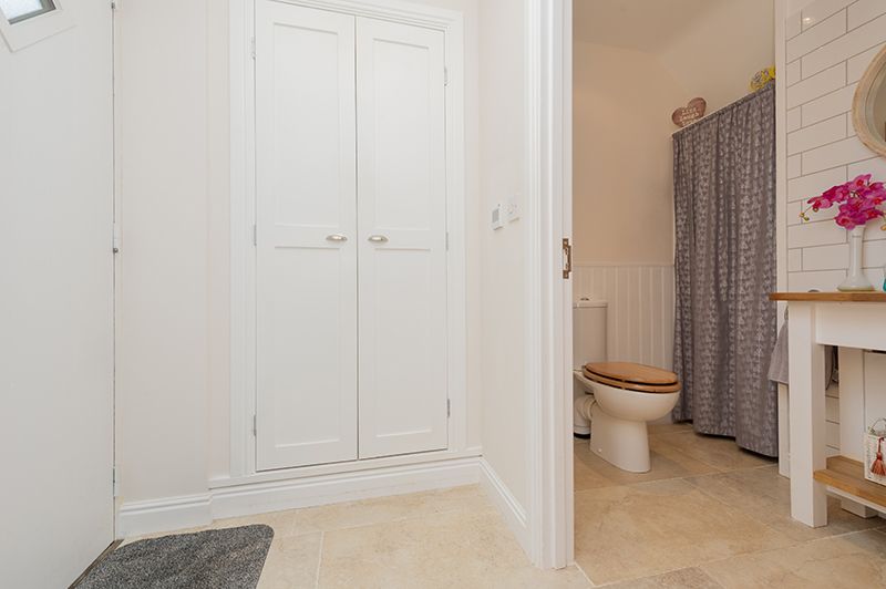 Rear Entrance Vestibule: Coats cupboard, rear door.
