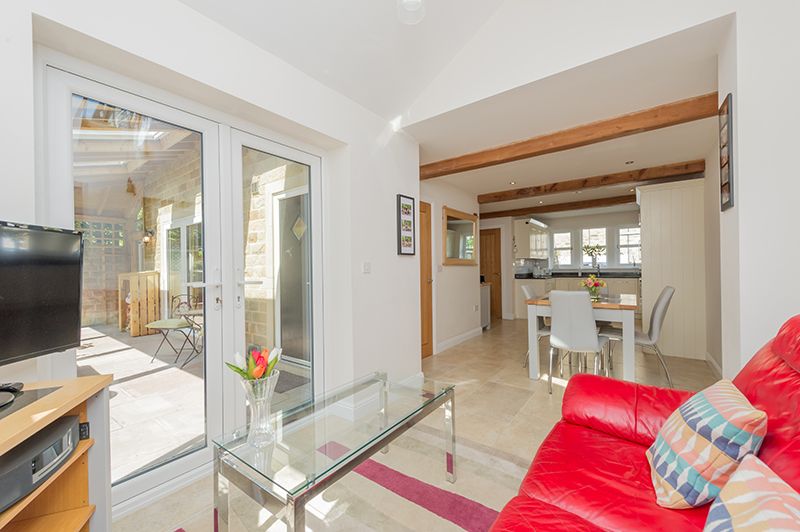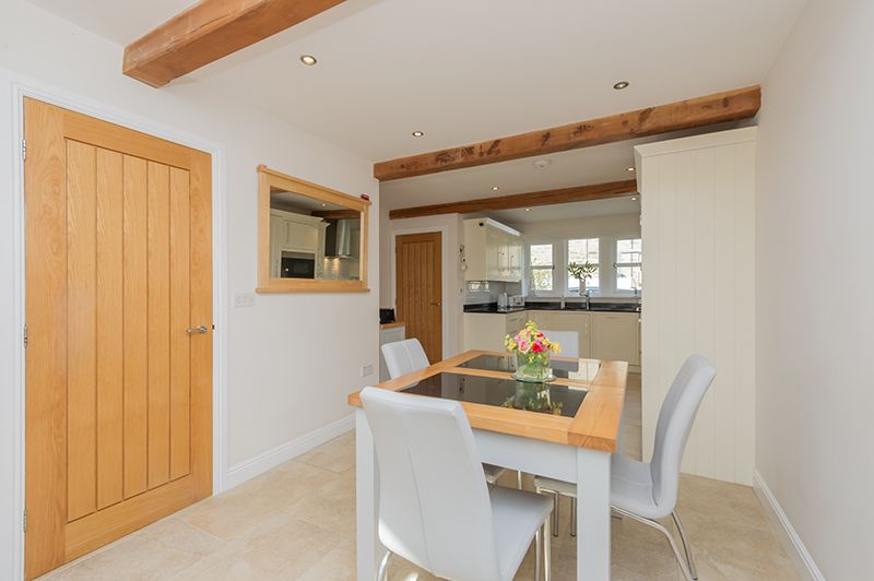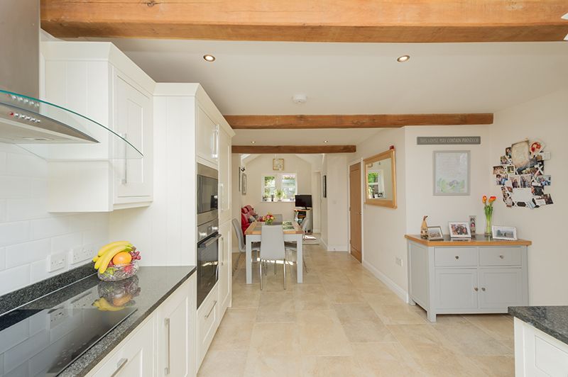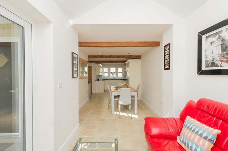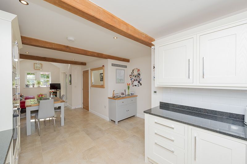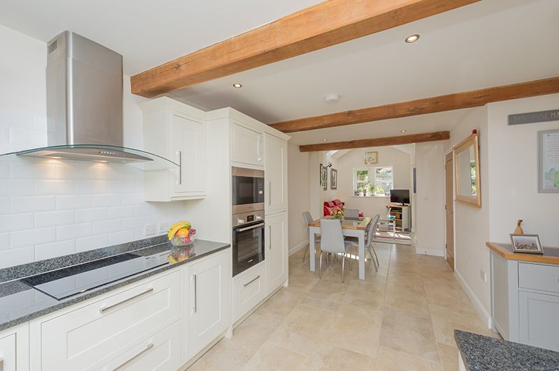 Kitchen Dining Family Room: 9.33m x 3.87m (30'6 x 12'6). Excellent range of wall and base units with granite work tops and matching splash backs, under lighting, attractive brick effect white tiling above, mullion style Upvc dg windows to front, inset stainless steel sink with a mixer tap, integrated dishwasher and fridge freezer, integrated Bosch electric oven and built in Lamona microwave, stainless steel extractor over a Neff induction ceramic hob, dg velux skylight window, mullion style Upvc dg window to rear, Upvc dg side French doors, porcelain tiled floor with under floor heating, beams, inset ceiling lights.