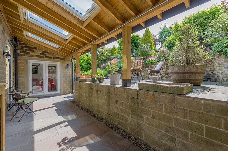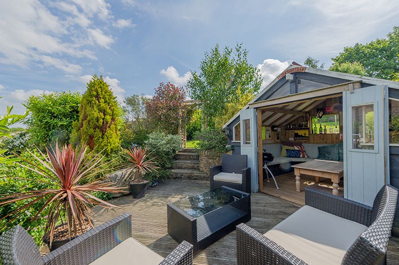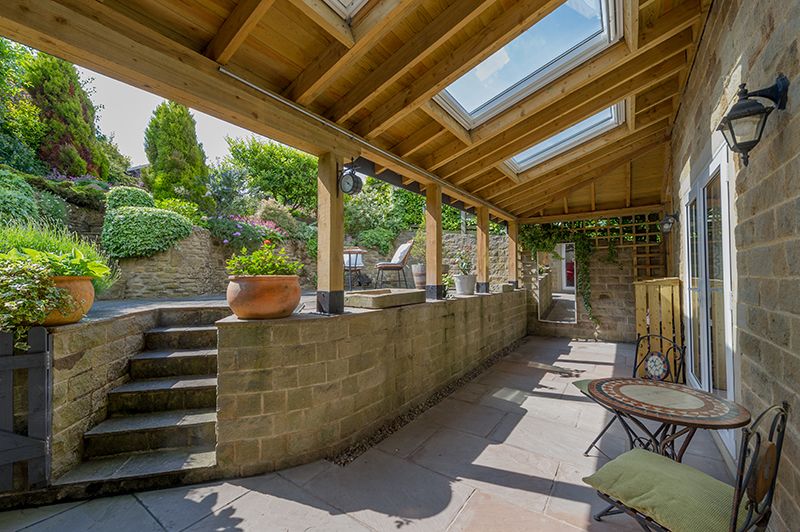 Externally electric gated access, block drive with a detached garage, gated access onto the rear which has an extended covered patio area with velux dg windows, steps up to a tiered south facing large garden with a summerhouse, vegetable plots and a greenhouse, along with extensive views over to Baildon and beyond. MUST BE VIEWED TO APPRECIATE.