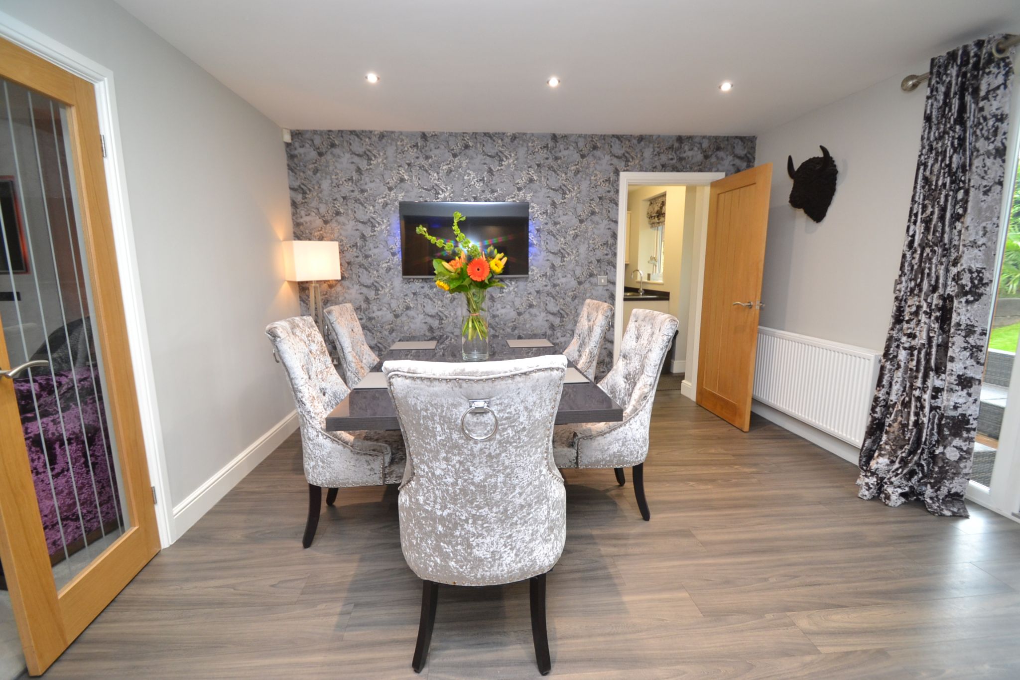 Here we have an exceptional, be-spoke 5 bedroom and 4 bathroom stone built detached property known as "The Malham", situated in this private woodland drive having a quiet aspect. Comprising, wide entrance hallway, cloaks wc, lounge with feature gas fire, open plan dining kitchen room, utility room, access to integral garage, first floor, 4 bedrooms, 2 with en-suites and the large family bathroom, second floor, study landing area, large master bedroom plus en-suite. There is a private drive leading to the property, and this property has parking for 7 cars, along with an enclosed rear SW facing landscaped garden. This is a superb young family home offering large family walk in accommodation throughout. Must be viewed to appreciate.