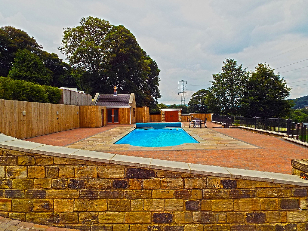The property is visible from the Leeds railway line traveling out of Shipley, and offers a fleeting opportunity to see the rear elevation of the property.  The property has extensive grounds, with large block paved areas, stone and brick built feature external bar all fitted out, large timber entertainment room, enclosed lawned garden, out door heated swimming pool with flagged and walled surrounds and wrought iron railings, lighting, additional out building changing pool room, with shower facilities &  kitchen. Steam room being tiled, benches, adjacent pump room, and an outdoor jacuzzi. Circular type feature with an ornate water fountain, Victorian effect lamps, chicken shed, polly tunnel, additional lawned garden. Under house storage with a Range Master acting as a barbeque location for access into the garden area, double doors. Basement games room area with wc, double doors. Double detached garage with light & power, roller door. There is a large parking area for numerous vehicles, electronic gates with a private drive lead down to the property.